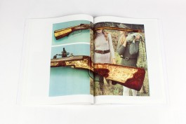 Weapons are nullified, made innocent and more dangerous with each of these collages. The very gesture of using images of weapons is already making a statement on aestheticizing that which should perhaps not be made beautiful. ”