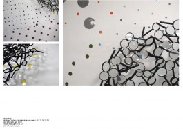 The work was chosen in a competition for Kunst am Bau in Baden Württemberg/ art on public buildings. The work is placed in front of an auditorium. The University is specialized for Financial Studies, Statistics and Law. For the backround I chose a drawing developed from “statistic cakes” which have cut of edges and therefore cannot give an overview.